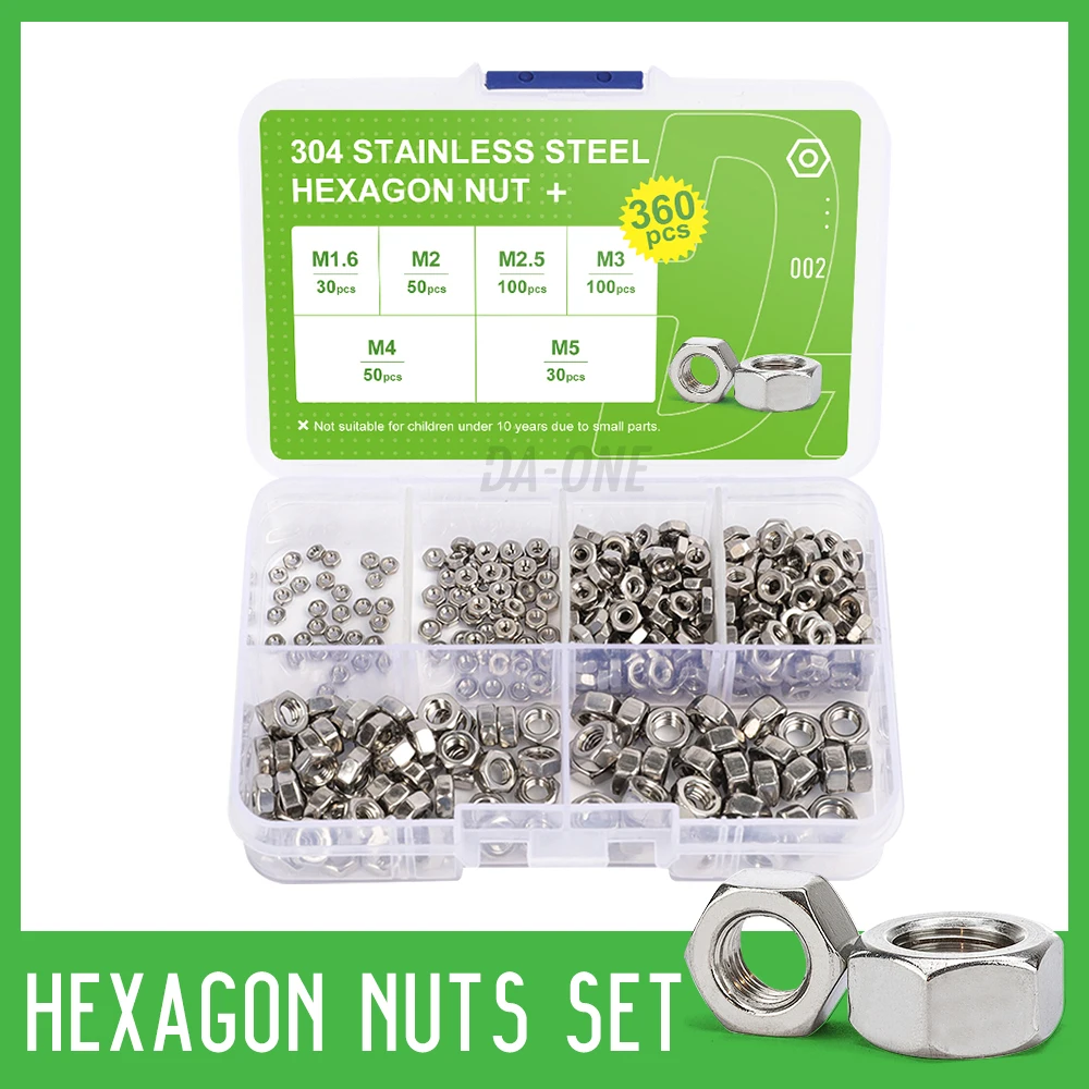 Promo Code - Hexagon Nuts Set M1.6 M2 M2.5 M3 M4 M5 M6 M8 304 Stainless Steel Hex Nuts Kit 180/210/220/360 PCS Bolt Nuts Tool Box for Screws