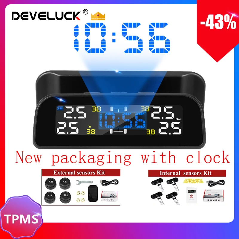 Review - With Clock TPMS Solar Car Tire PressureTemperature Alarm Monitoring System External Sensors rotate 360 degrees accessories tool