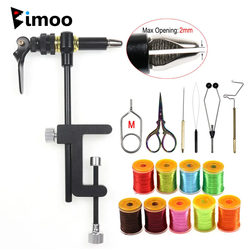 On Sale - Bimoo 360° Rotation C-Clamp Fly Tying Vise Hardened Steel Jaws Jig Lure Making Tool Bobbin Holder Threader Fly Tying Tool 200D