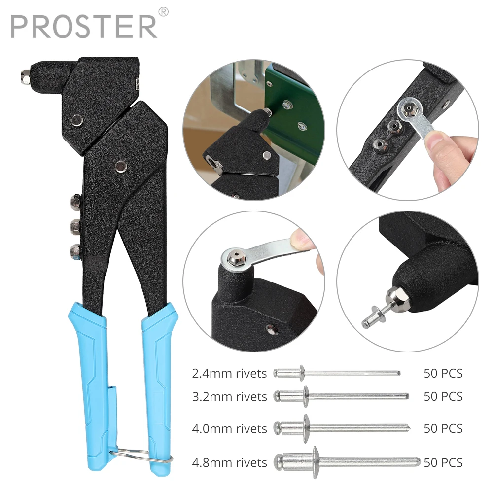 Where to Buy Proster 360° Hand Rivet Gun Riveter Gun Equipped with 200pcs 2.4mm 3.2mm 4.0mm 4.8mm Rivets Heavy Duty Metal Furniture Tools For Cheap