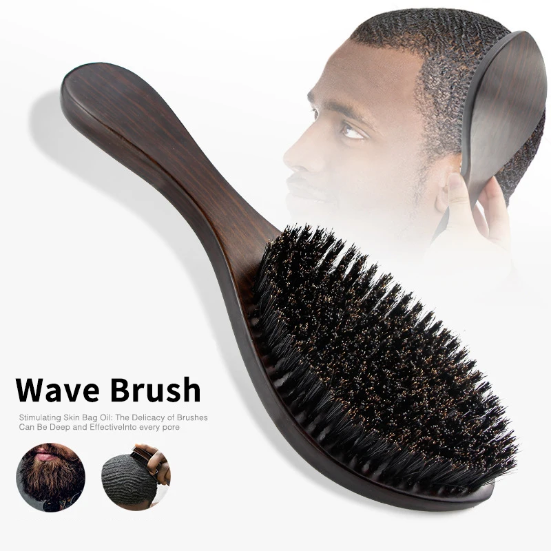 Excellent - 360 Wave Hairbrush Soft Boar Bristles Wooden Handle Hair Brush Hairstyling Tools For Afro