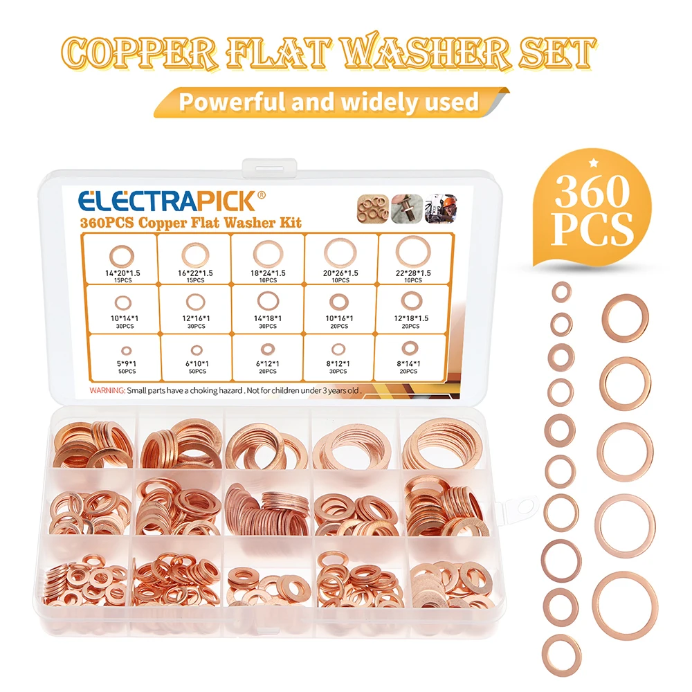 On Sale - 360/220/180Pcs Copper Sealing Solid Gasket Washer Sump Plug Oil For Boat Crush Flat Seal Ring Tool Hardware Accessories